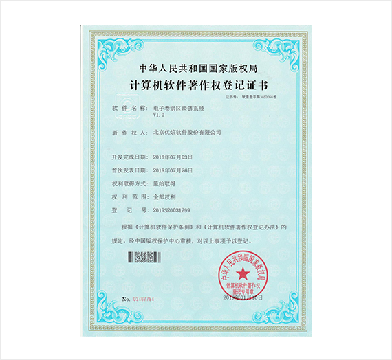 软件著作权的“区块链底层技术”适应政法系统的“法务证据链”,该系统对法院证据案件结案后归档存储到链上,