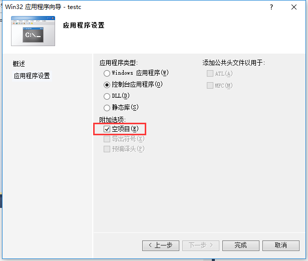 在VS2010中新建“Win32控制台应用程序”, 附加选项选择“空项目”。选择“文件”=>“新建项目”=>“Visual C++”=>“Win32 控制台应用程序”,自定义名称(例:testc),单击“确定”=>“下一步”=>“附加选项中选择空项目”=>单击“完成”。