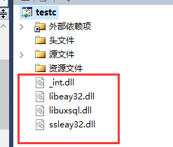 右键“项目”=>“添加”=>“现有项”,添加“ssleay32.dll”、“_int.dll”、“libeay32.dll”、“libuxsql.dll”到创建的项目文件夹下,根据实际路径添加。