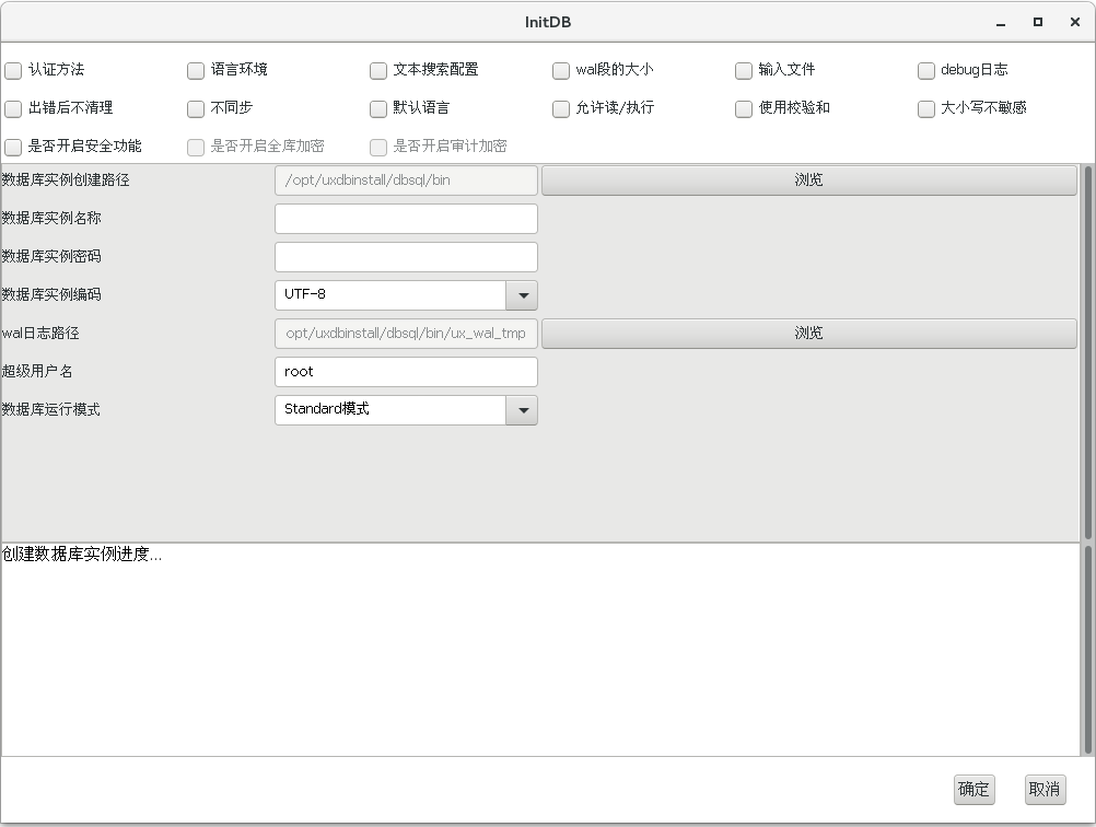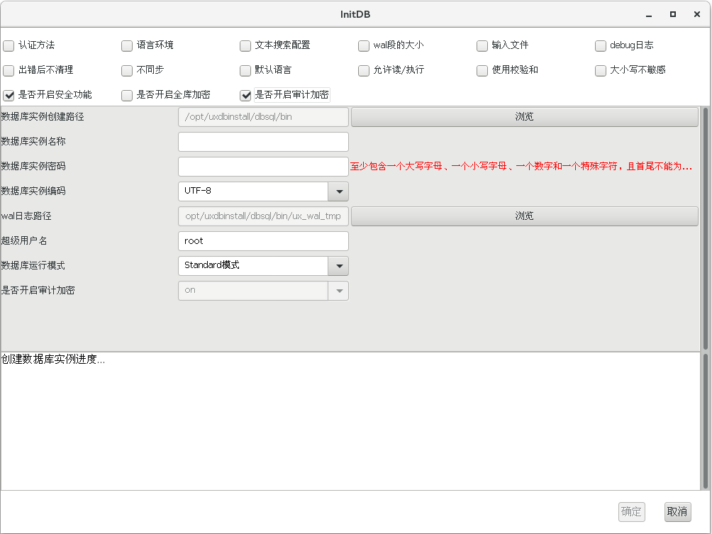 初始化带有安全功能的UXDB实例。安全功能请参见《优炫数据库管理系统安全功能手册》。
